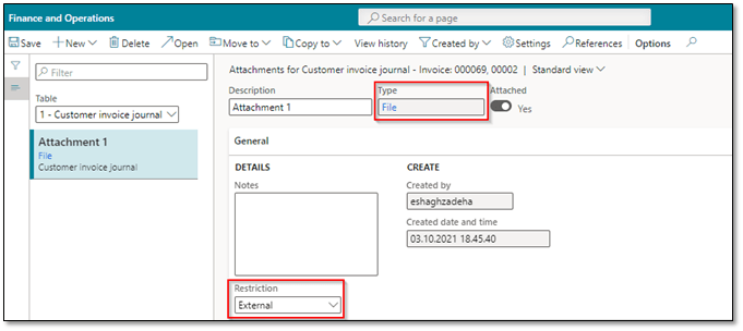 For example, for free text invoice and sales orders, you can navigate to Account receivable > Inquiries and reports > Invoices > Invoice journal and then click on binders/clip button to add attachment(s) to the invoice.