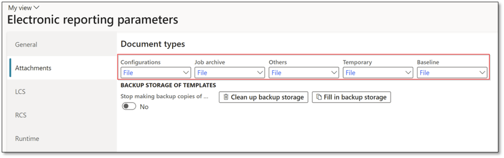 - Click on Electronic reporting parameters and set “File” for attachment document types.