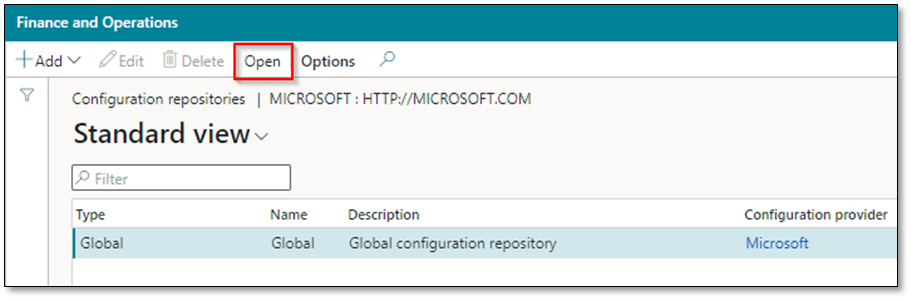 - On “Configuration repositories”, choose type “Global” and click on “Open”