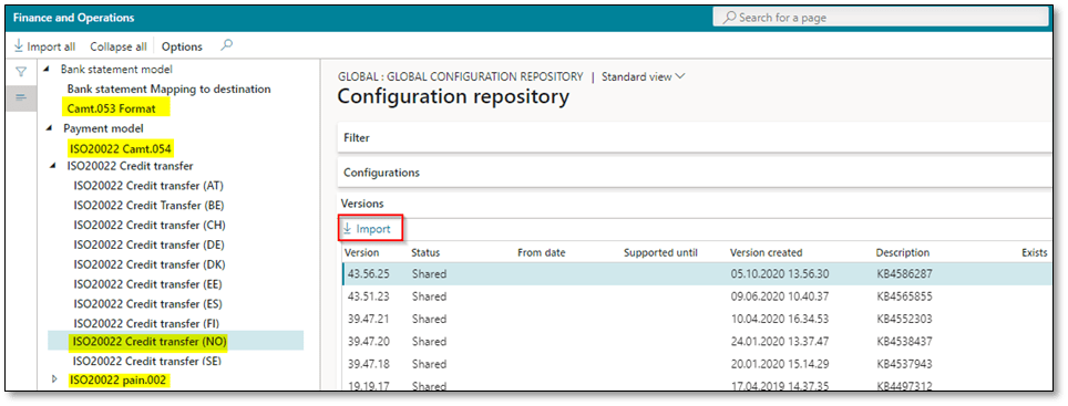 In order to import ISO20022 configurations in D365FO, you can perform following steps: