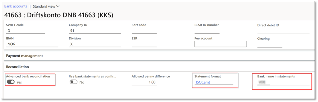 - File formats > Export format configuration : ISO20022 Credit transfer (NO)