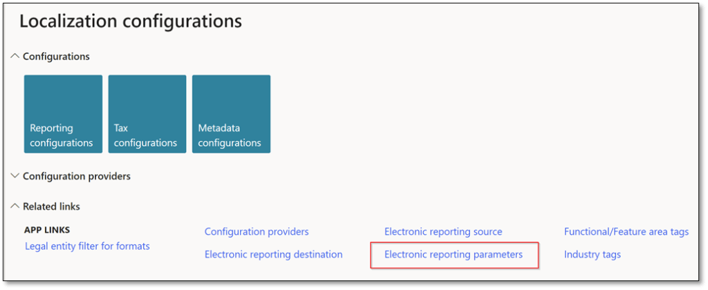 There are standard configurations in Dynamics 365 Finance & Operations that can be installed via Microsoft repositories. These configurations are approved already can be used as plain version or it is already customized for each country. In addition, it’s not hard to create a custom configuration when you need to create a modification on configuration based on bank requirements.