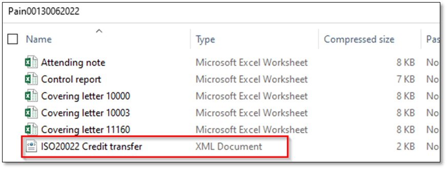- Open the zip file and then you can fetch “ISO20022 Credit transfer” file.