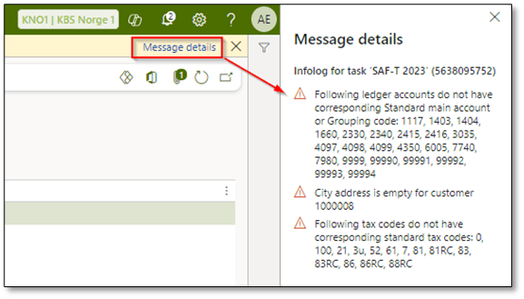 - Mapping: Checks for tax code and main account mapping. Ensure that you have set up mappings for all tax codes and main accounts to the standard ones and select “NA” for those that do not apply.