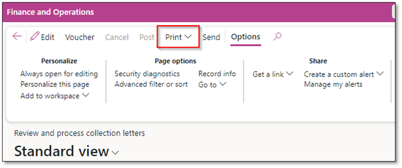 - Collection Letter: Only supports the Print action.