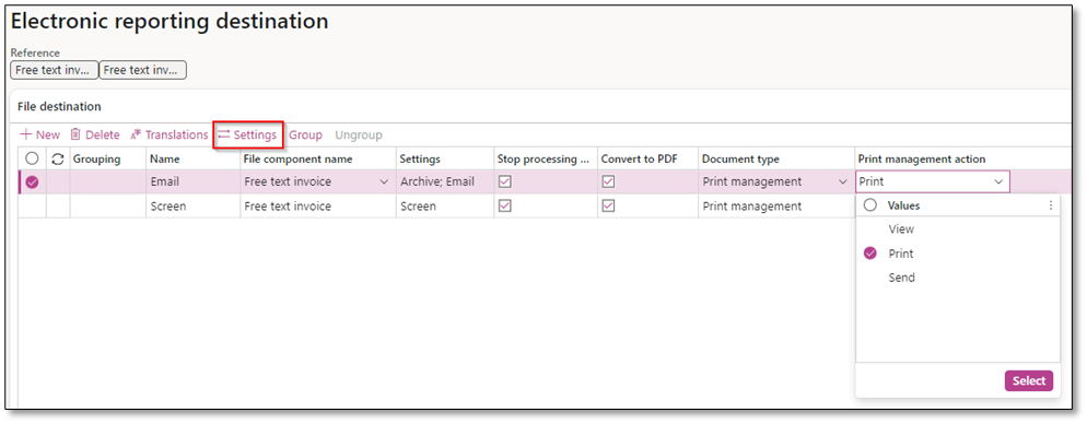 CBDs in D365FO support both “View” and “Print” actions, while the “Send” action is specifically for sending documents electronically. Some forms in D365FO may support both “View” and “Print” actions, while others support only “Print.”