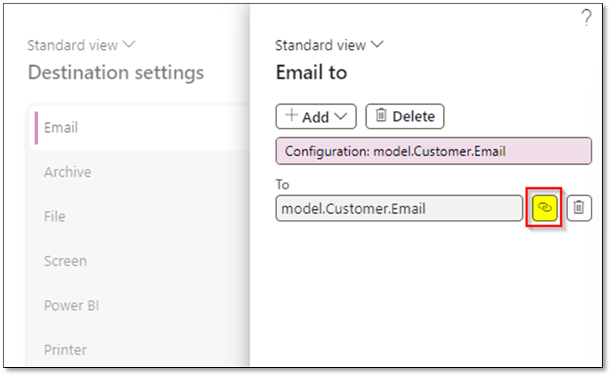 CBDs can be sent via email directly from D365FO. Email recipients can be retrieved dynamically from model mapping or set as fixed values.