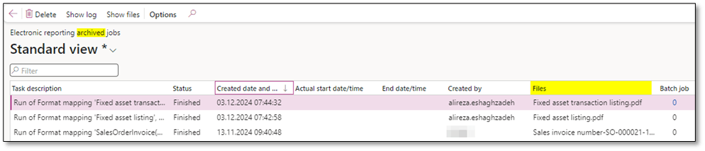 EBD files can be archived directly within D365FO. The archived files are stored in Organization administration > Electronic reporting > Electronic reporting archived jobs.