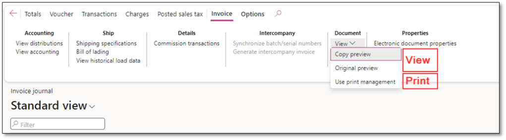 - Invoice Journal: Supports both View and Print actions.