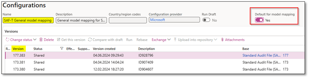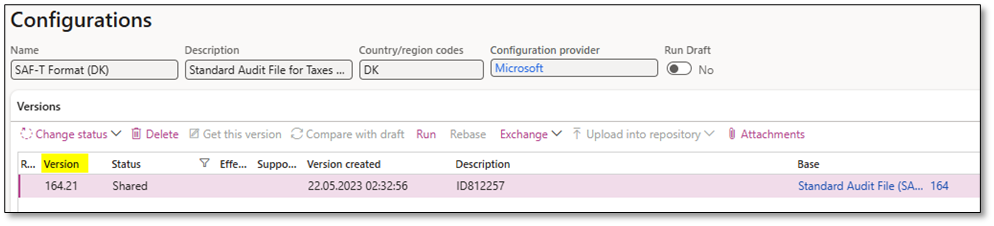 The latest SAF-T (DK) ER configuration remains at version 164.20. Additionally, the SAF-T General model mapping must be set as the default.