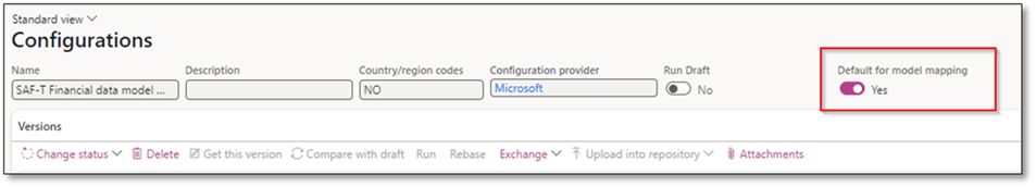 Set the model mapping “SAF-T Financial data model mapping” as the default for model mapping.