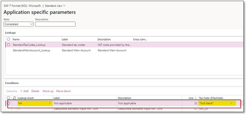 - Add “NA” as the last line for tax codes that lack mapping.