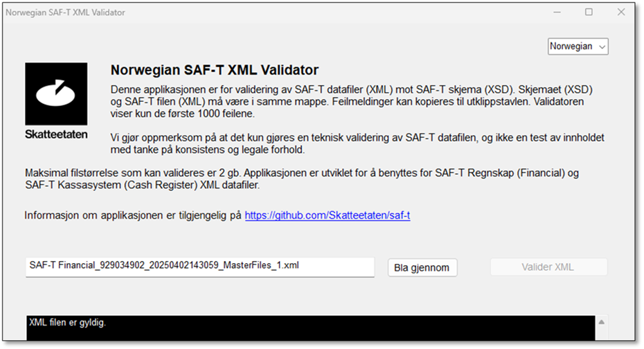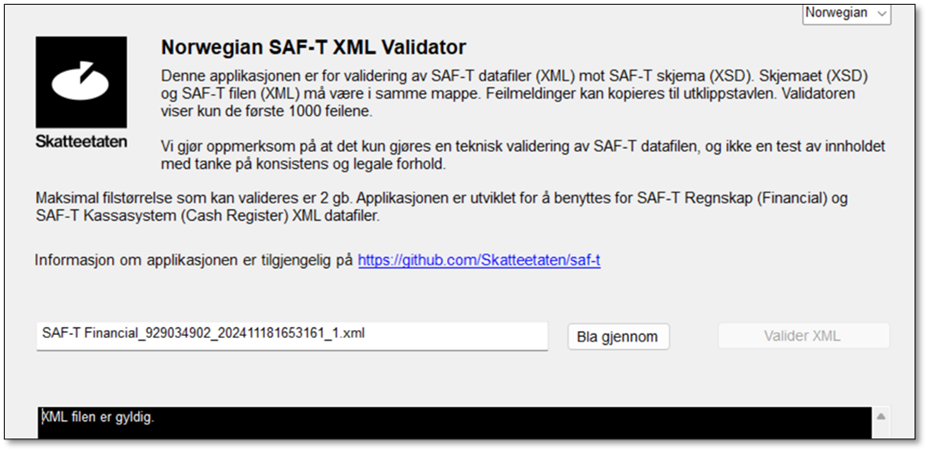 - Download the Norwegian SAF-T XML Validator.