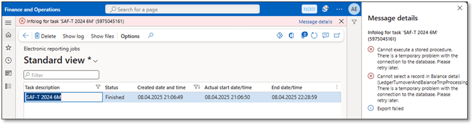 - ✅ Run the SAF-T job after business hours or outside of month-end periods to avoid contention with other batch jobs.