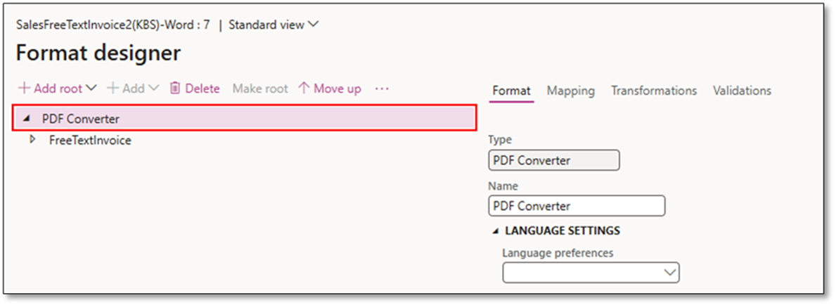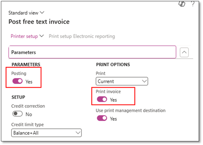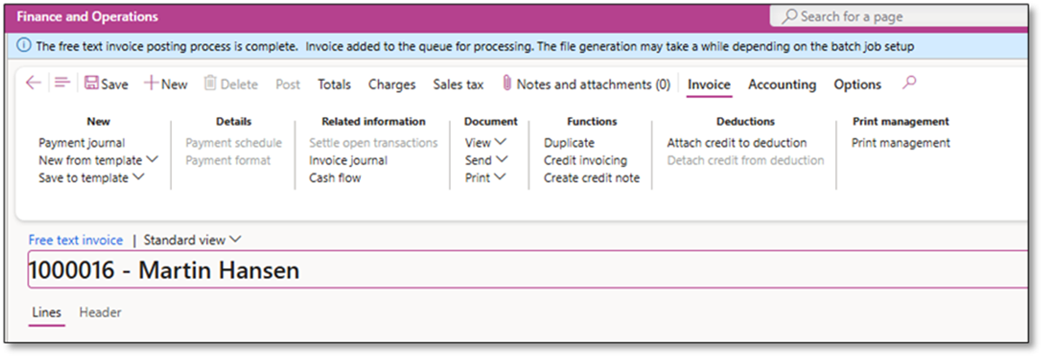 If your legal documents (Sales invoice, Free text invoice, etc.) use standard SSRS report designs, no special layout change is required. Ensure Print invoice = Yes when posting and that the destination is allowed to produce a file.
