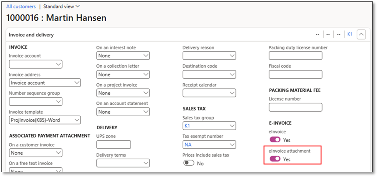 - You enable eInvoice and eInvoice attachment on the Customer record.