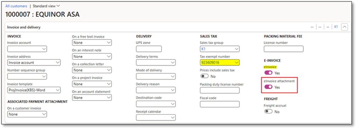 [!IMPORTANT] Only enable eInvoice attachment for customers whose receiving channel or Access Point workflow supports XML containing embedded binary documents.